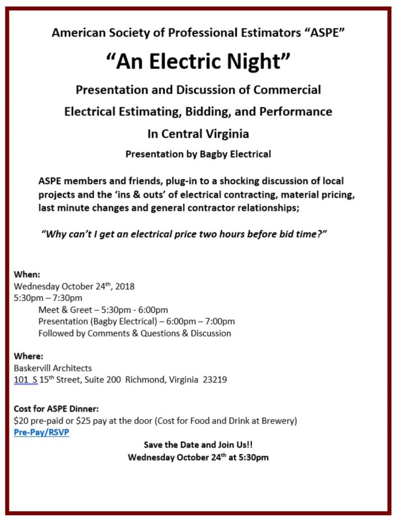 Copyright 2012 American Society of Professional Estimators - Richmond Virginia Chapter.